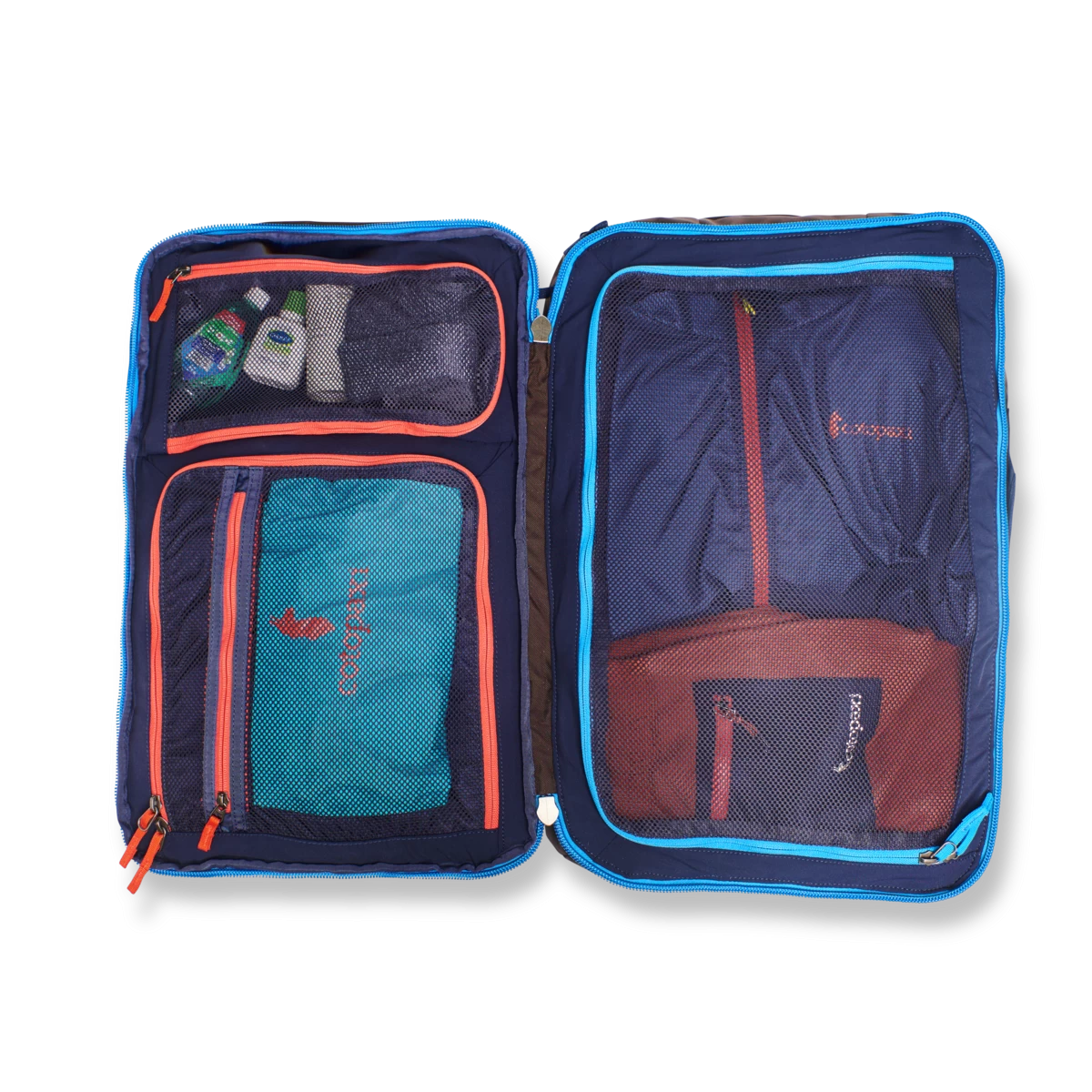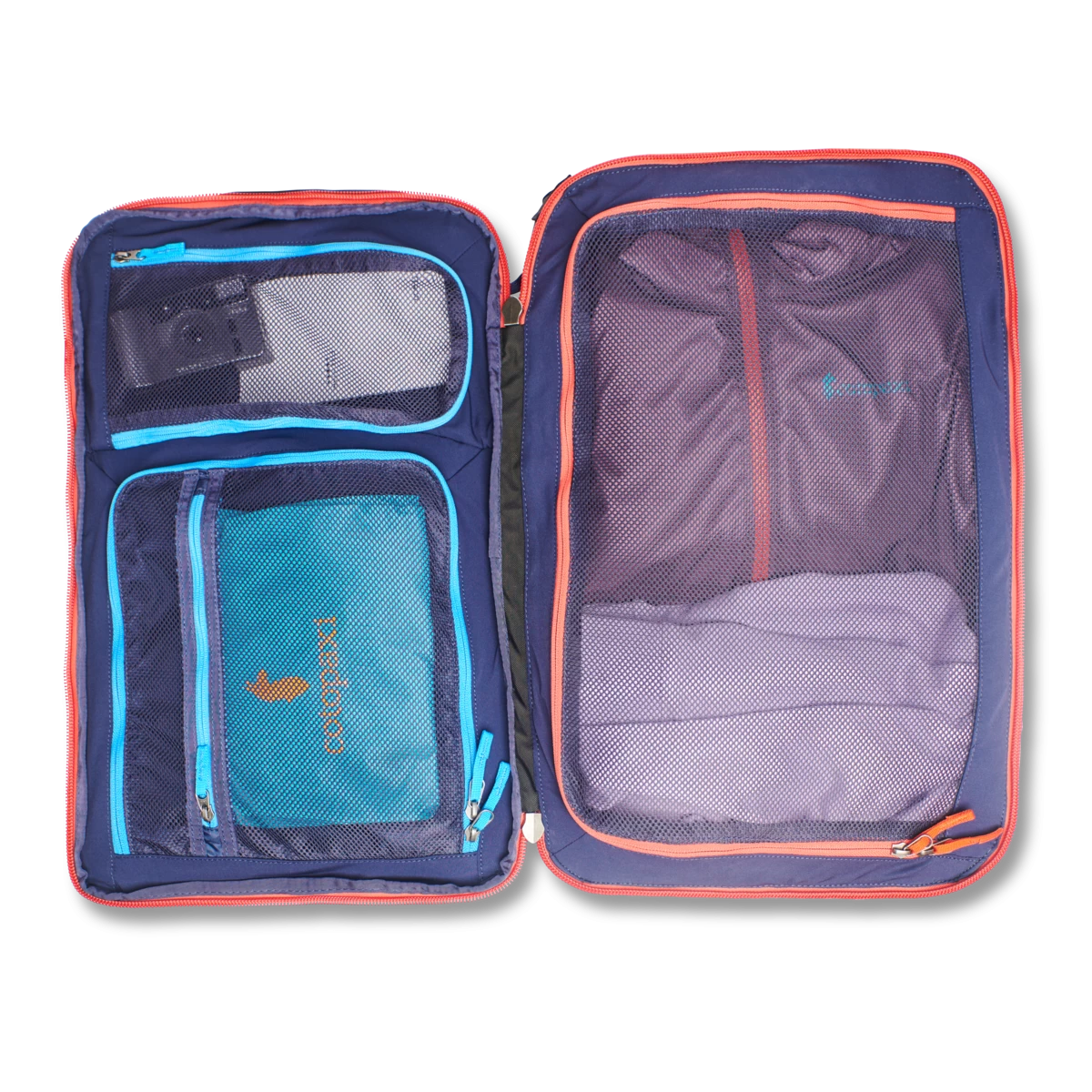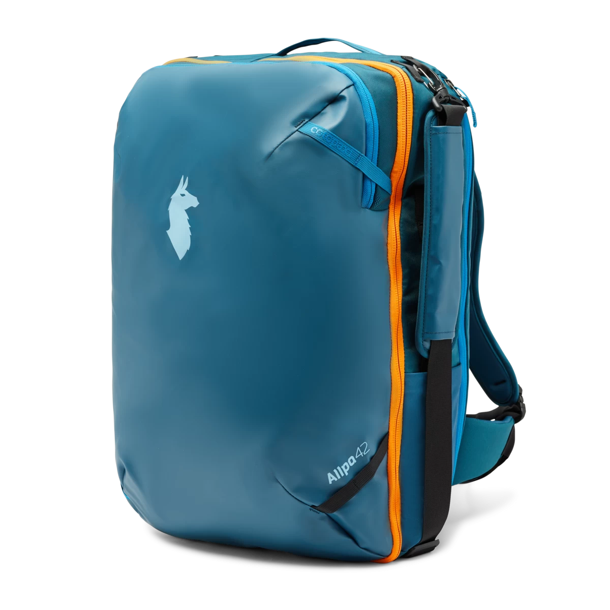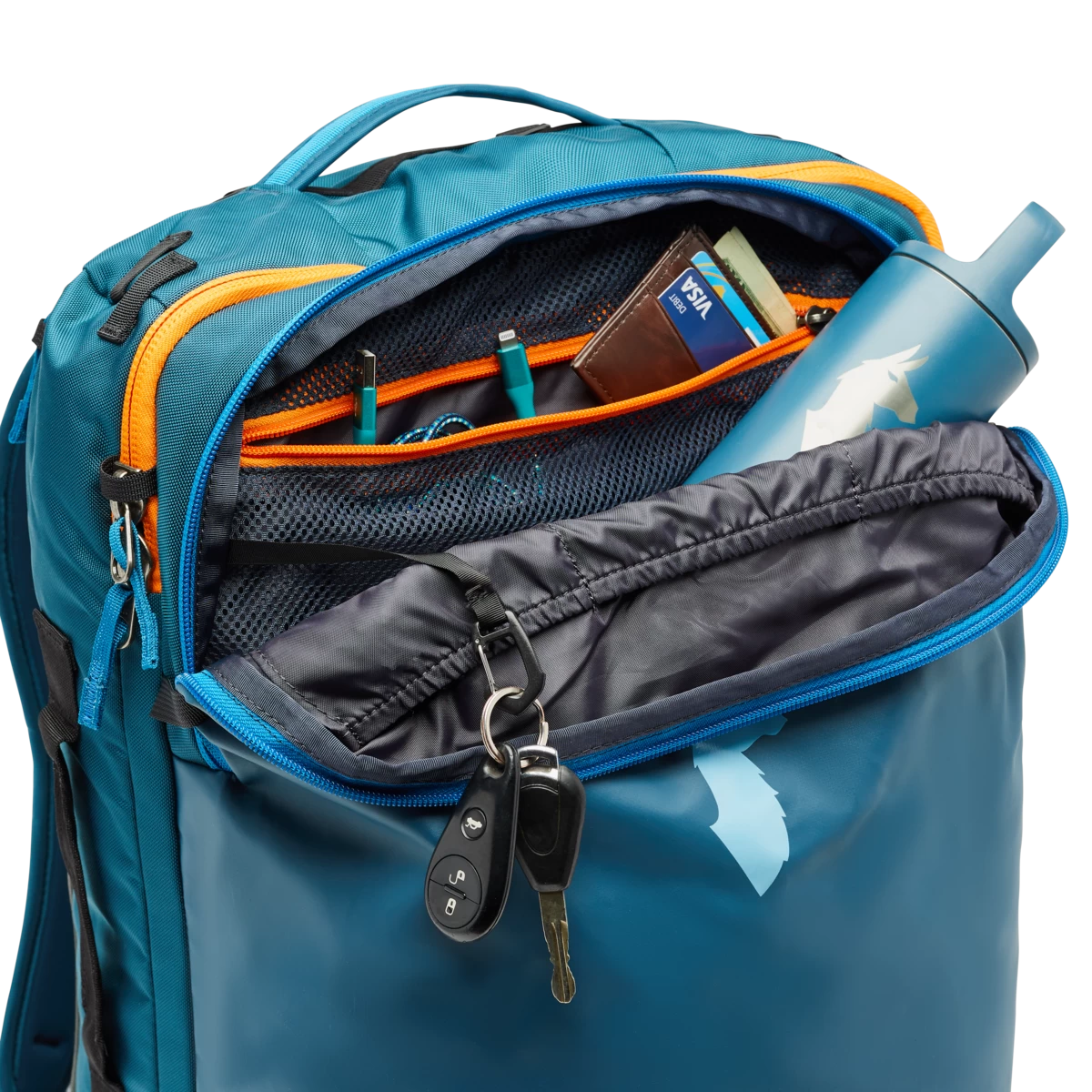 The pack features a suitcase style, zippered opening and inside, we divvied up the Allpa with various sizes of zippered mesh pockets to keep clothing, travel documents, toiletries, and other essentials neatly organized when you’re in transit. We also added a padded sleeve for your laptop or tablet, a top zip pocket for quick-grab items, and an exterior shortcut pocket that provides access to the main compartment when you don’t want to fully open the bag. Four reinforced handles let you grab, pull, and pitch from any angle, and the pack’s carabiner lash points let you strap on extra gear.Â