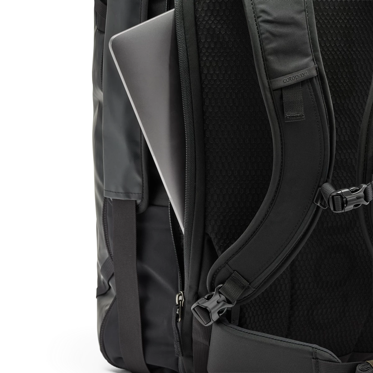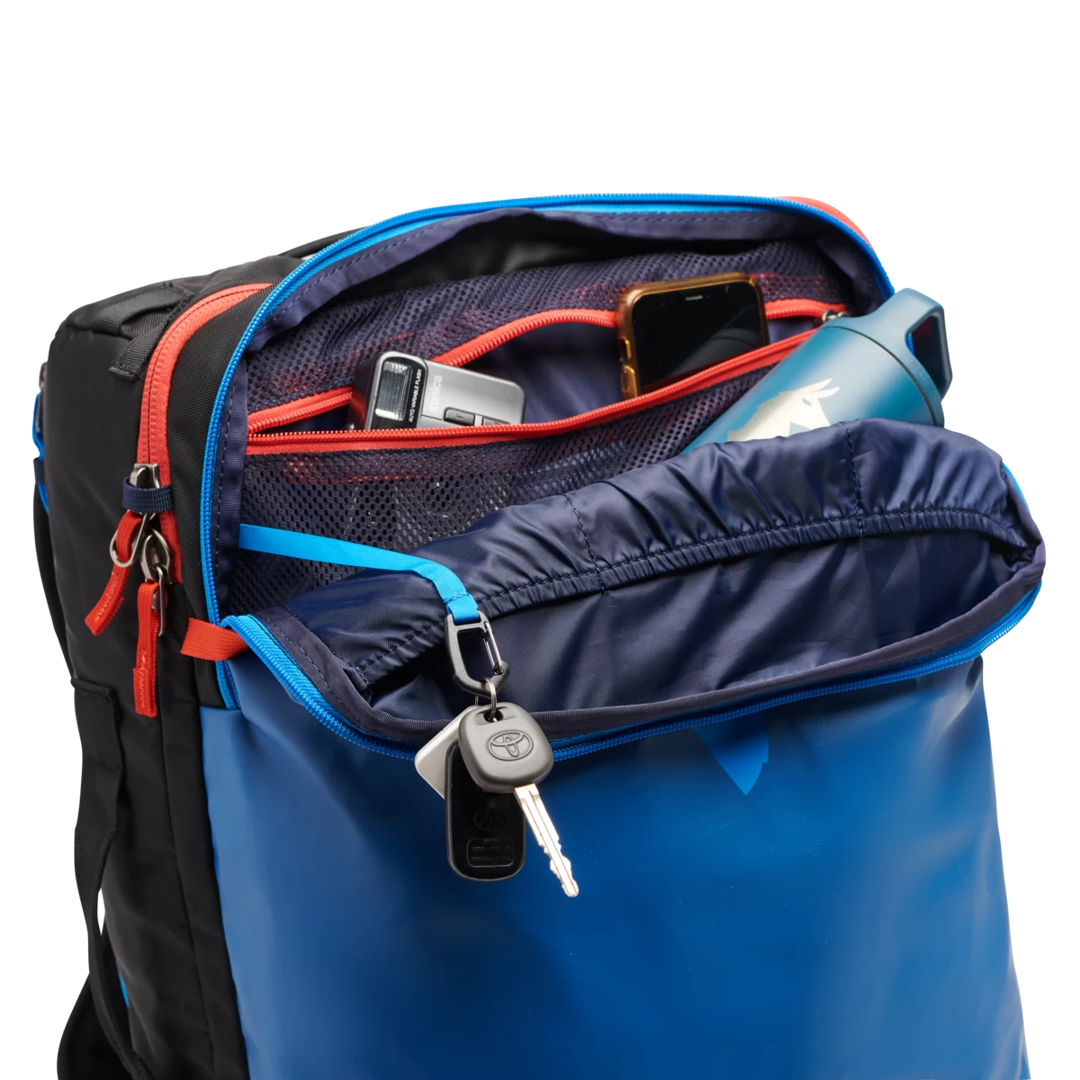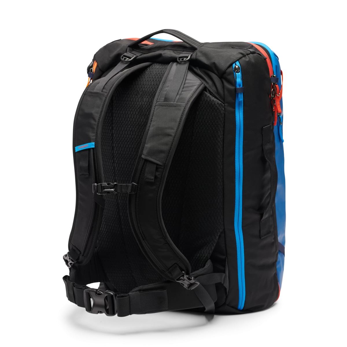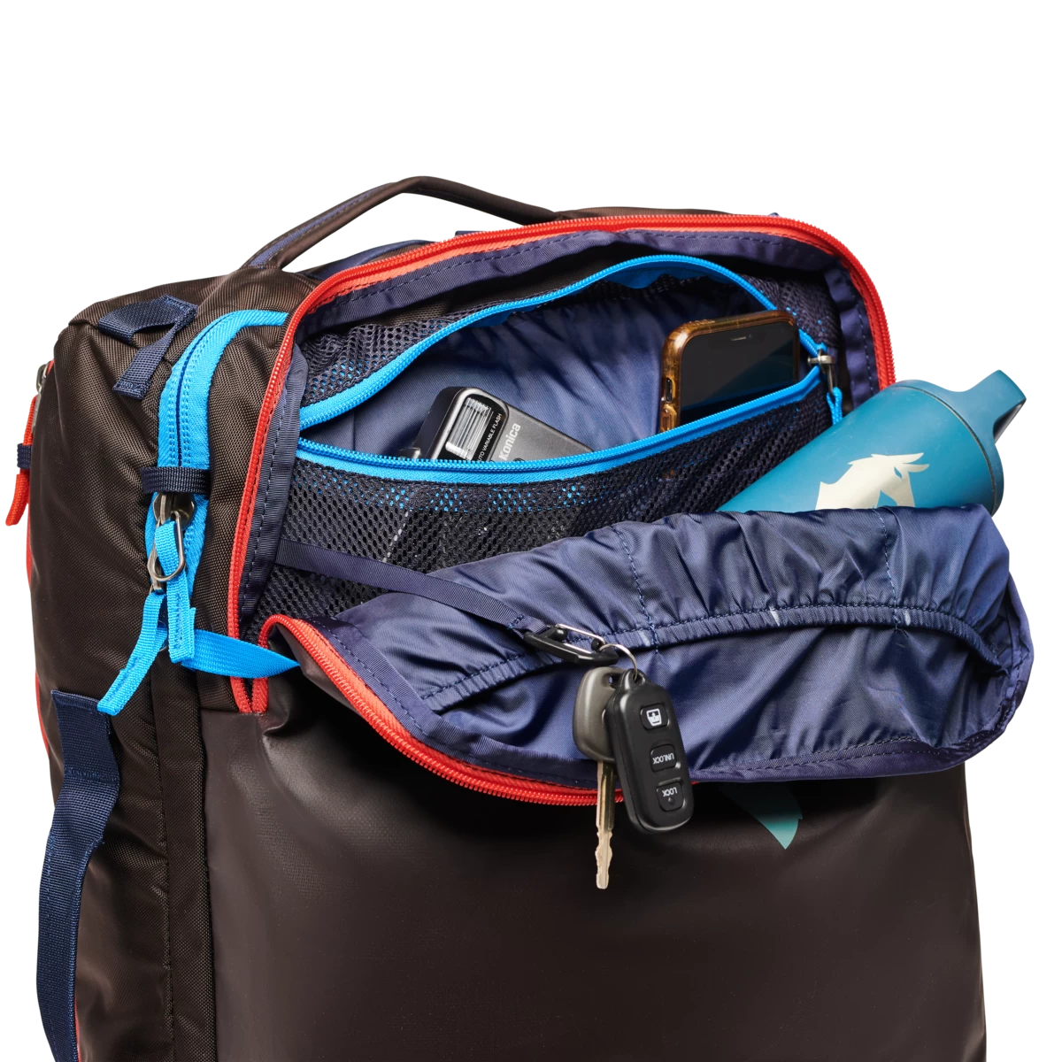 The pack features a suitcase style, zippered opening and inside, we divvied up the Allpa with various sizes of zippered mesh pockets to keep clothing, travel documents, toiletries, and other essentials neatly organized when you’re in transit. We also added a padded sleeve for your laptop or tablet, a top zip pocket for quick-grab items, and an exterior shortcut pocket that provides access to the main compartment when you don’t want to fully open the bag. Four reinforced handles let you grab, pull, and pitch from any angle, and the pack’s carabiner lash points let you strap on extra gear.Â