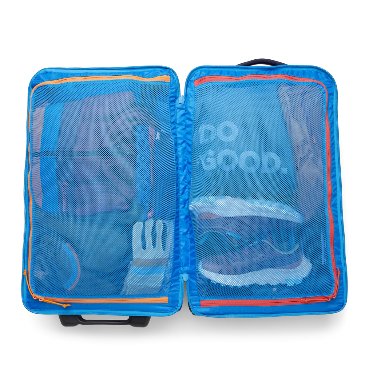 Our bestselling Allpa pack has transformed into a burly roller that puts four-wheeled bags to shame on cobbled streets, dirt roads, and stairs. Made from durable, water-resistant polyester and lightweight yet strong ballistic nylon paneling, the Allpa Roller Bag hangs tough. And it features the split-case organization our Allpas are known for to keep you dialed wherever you adventure. Also available in a carry-on-compatible 38L size. Â