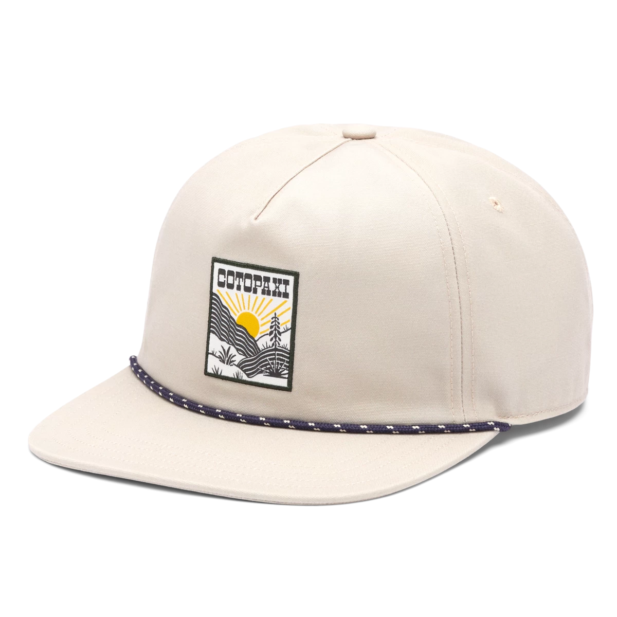 This vintage-inspired heritage rope hat features a tall front panel, a playful woven patch, and great coverage for sunny days.