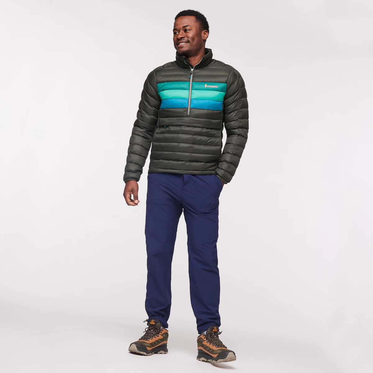 Our bestselling Fuego down jacket in hooded pullover form for winter layering