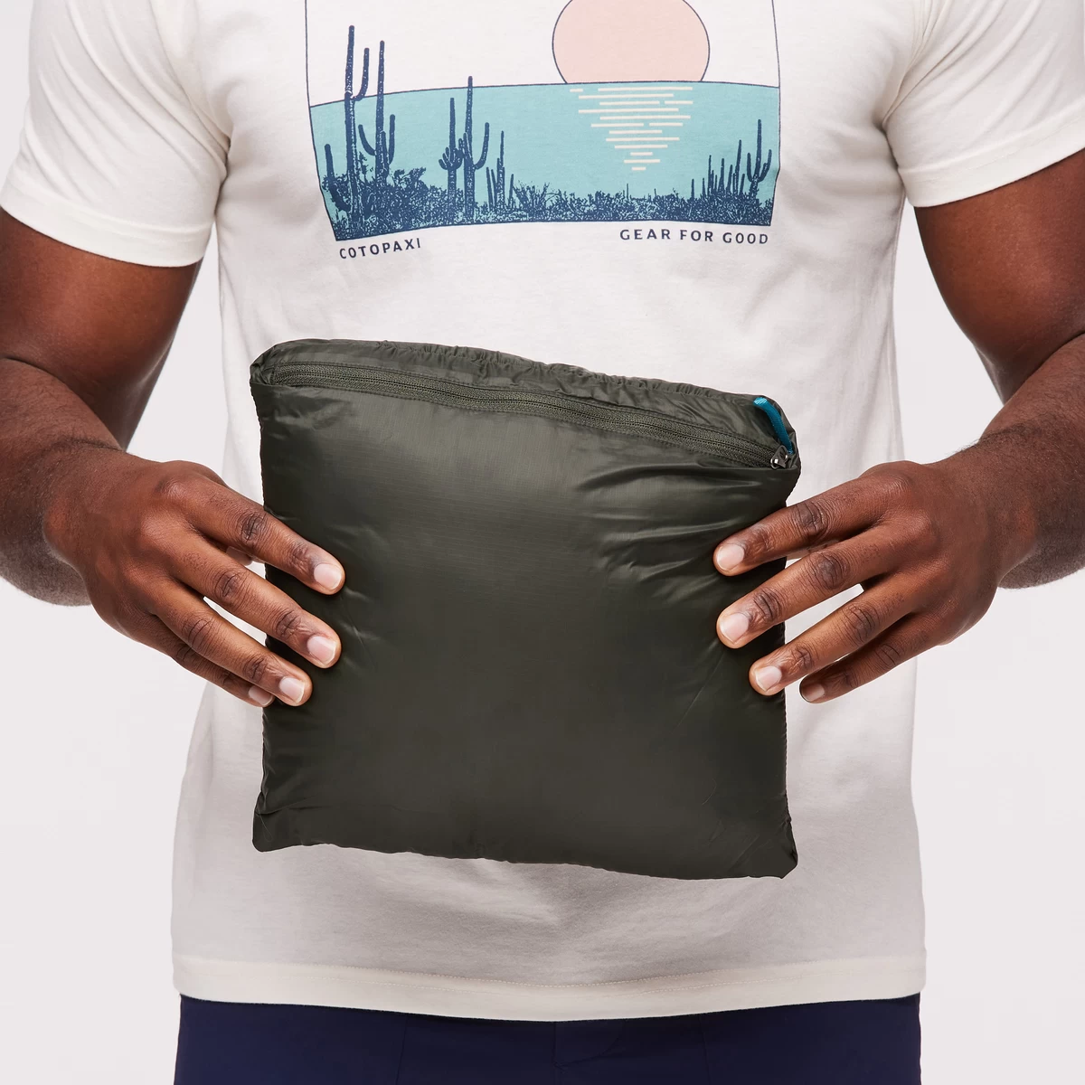 - Packs into zippered pocket